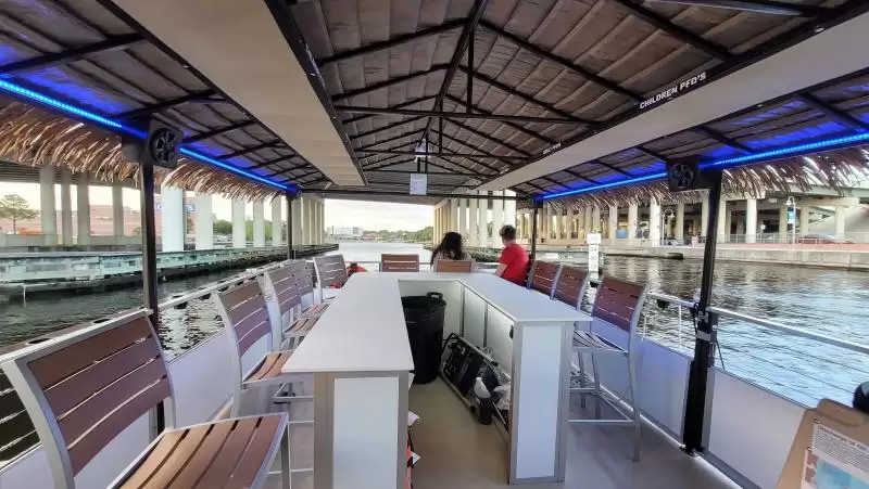 Bathroom aboard, Tampa's #1 and only US Coast Guard certified Tiki Boat. Book online for a minimum group of 6 and up to 12 people. BYOB, Bluetooth sound. 90 minute tours or customize up to 4 hours. Family friendly, Great for Birthday parties, bachelor parties and corporate team building. Wheelchair accessible and ADA compliant.